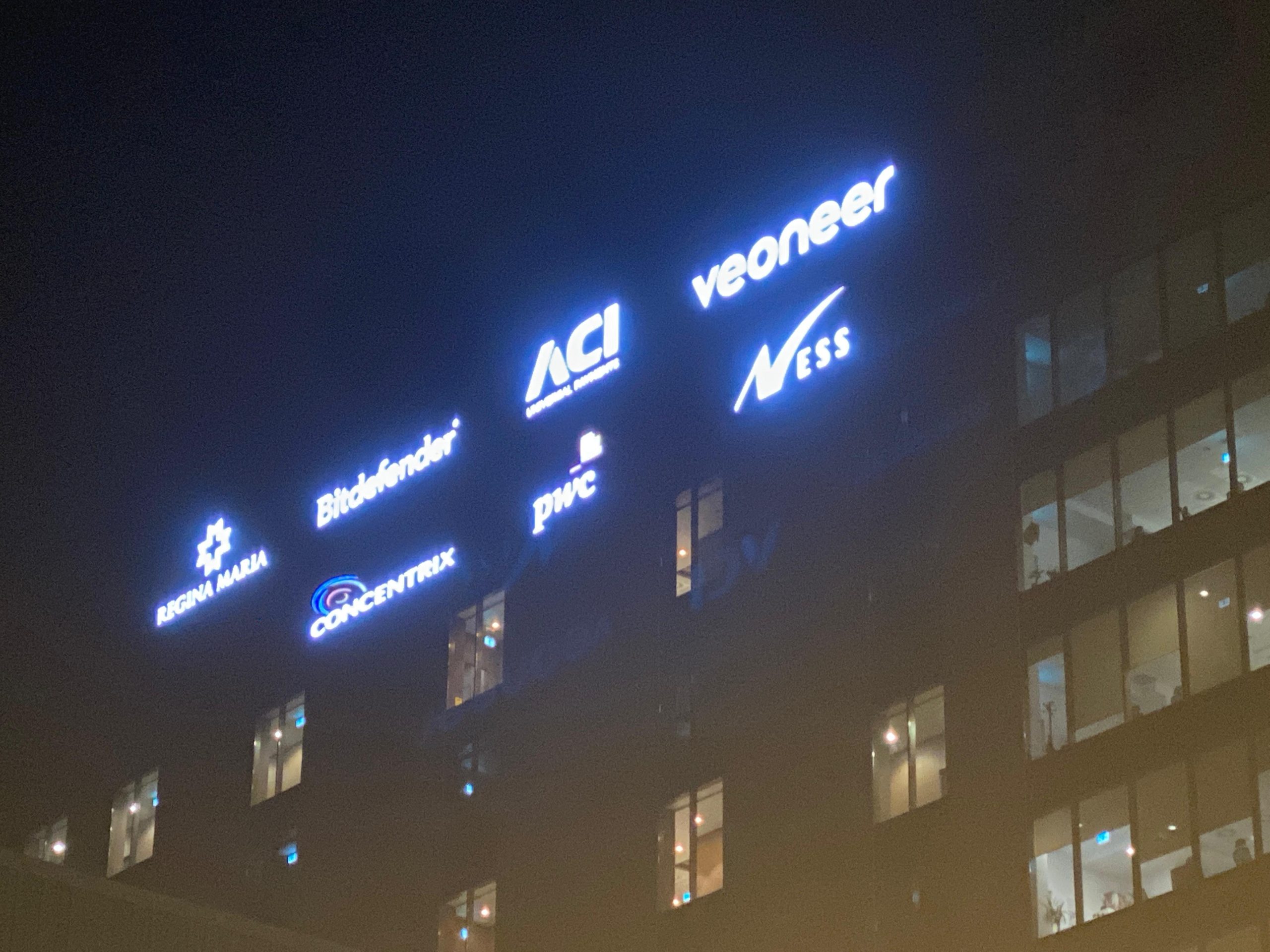 Sistemul de prindere este adaptat tipului de fațadă — beton, sticlă, alucobond sau metal — cu posibilitatea integrării iluminării LED halo sau frontale.